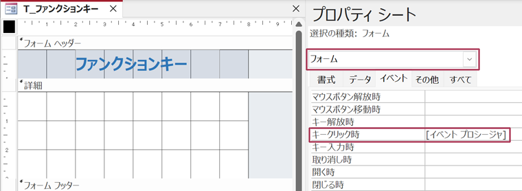 ACCESSのフォームでVBAを使用してファンクションキーに処理を割り当てる方法