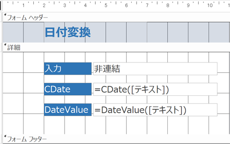 フォームを作成するには、まず テキストボックス を配置し、そこに日付を入力します。入力された日付は、 テキストデータ として扱われます。ここで、 CDate関数 を使用して、このテキストデータを日付型データに変換します。変換された日付型データは、 ACCESS のデータベース内で使用できます。