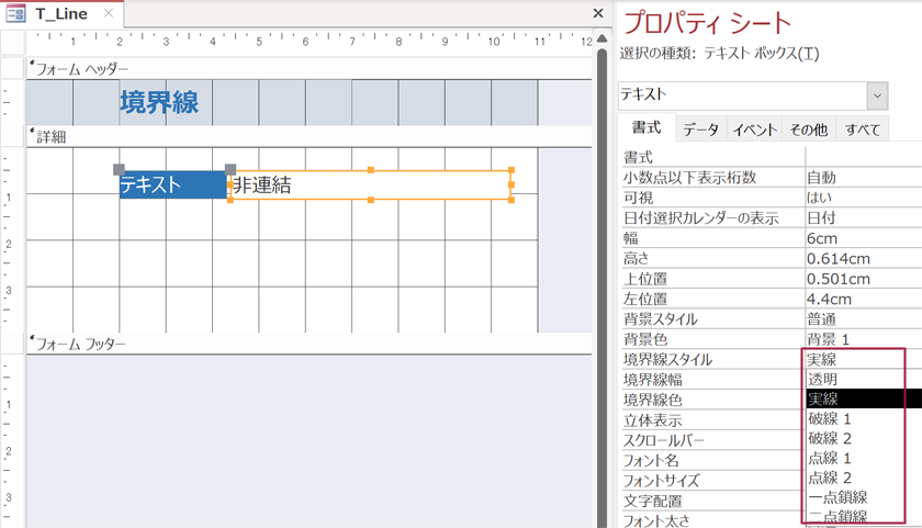ACCESSのフォームで境界線スタイルを変更する方法は?