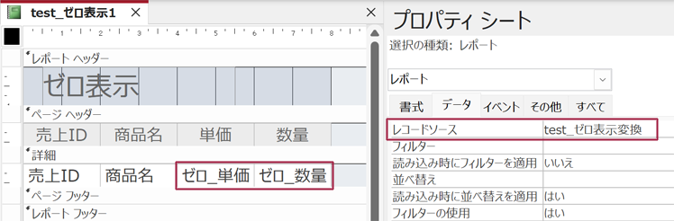 書式設定で空白にする場合、レコードソースのデータは0のままですが、フォームやレポートでは空白で表示されるため、データの内容は変更されず、表示のみを変更することができます。
