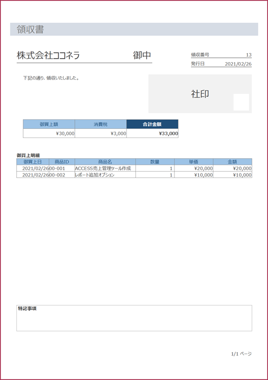 ACCESSで領収書を作成する方法は?