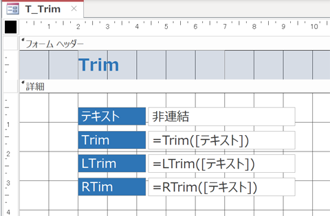 ACCESSのTrim関数、LTrim関数、RTrim関数を使用して空白を削除する方法