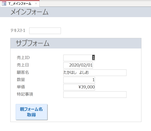 ACCESS VBAで親フォームの名前を取得する方法とサブフォームの操作