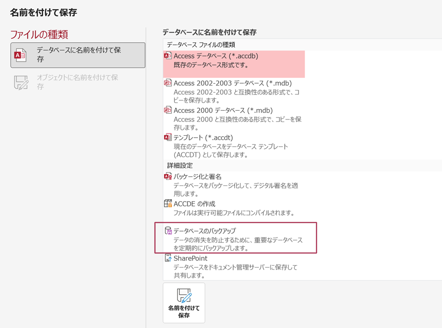 ACCESSデータベースのバックアップ方法